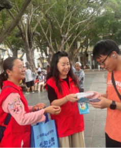 2025年4月27日,为普及职业病防治知识,增强群众职业健康意识,护理部、团支部联合本市热心义工团队走进蓬江区启明里开展“职业健康进社区,守护劳动者健康”活动,向群众派发宣传单、有奖问答等形式,为市民介绍职业健康知识和职业危害,本次活动共发放宣传资料200余份。惠及居民150余人次,有效提升了群众对职业病“早预防、早发现、早治疗的认识”。