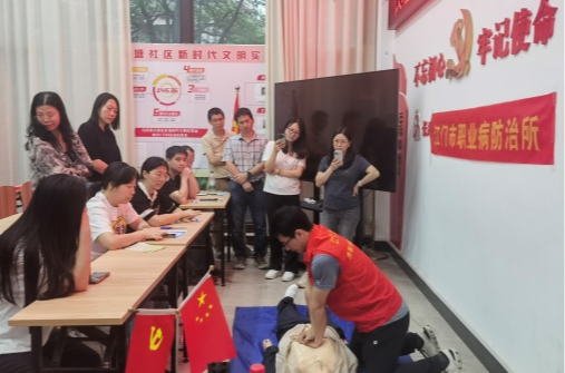 5月9日上午,护理部联合团支部参加了长塘社区举办的“关爱母亲”义诊活动。现场普及职业病防治知识及心肺复苏急救技能,群众积极抢答。